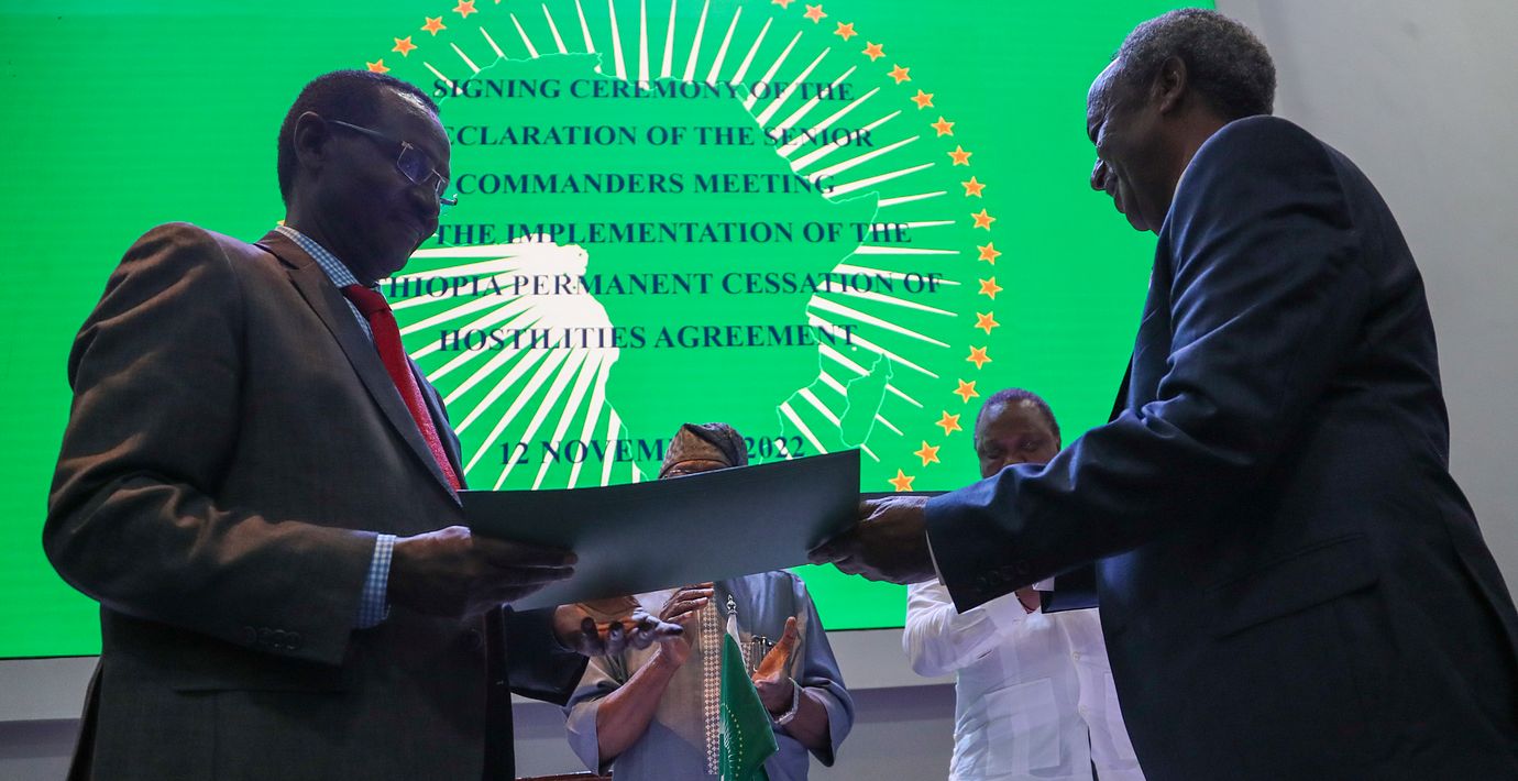 Avtalet om vapenvila mellan regeringen och Tigray-rebellerna slöts för två veckor sedan. Avtalet innebär bland annat att regeringen ska dra tillbaka sina styrkor från Tigray-provinsen.