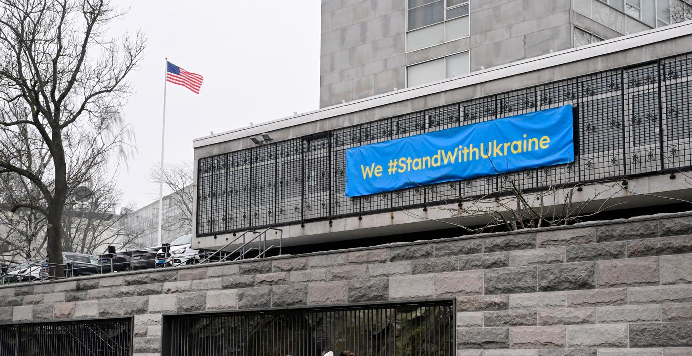 USA:s ambassad plockar ner Ukraina-banderoll