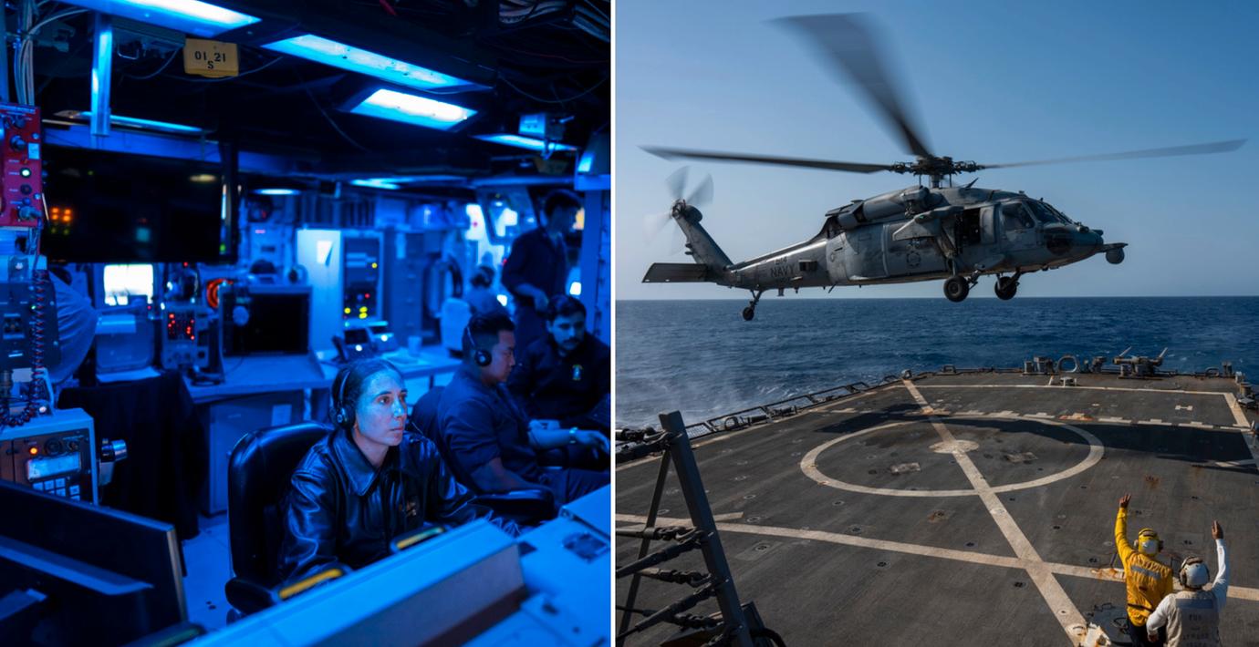 Huthierna avfyrar drönare eller robotar nästan dagligen, upp till ett tjugotal på samma gång. USA:s flotta har ibland bara sekunder på sig att sätta in motåtgärder. På ett av fartygen har färgen bränts bort på däck av alla luftvärnsrobotar som avfyrats.