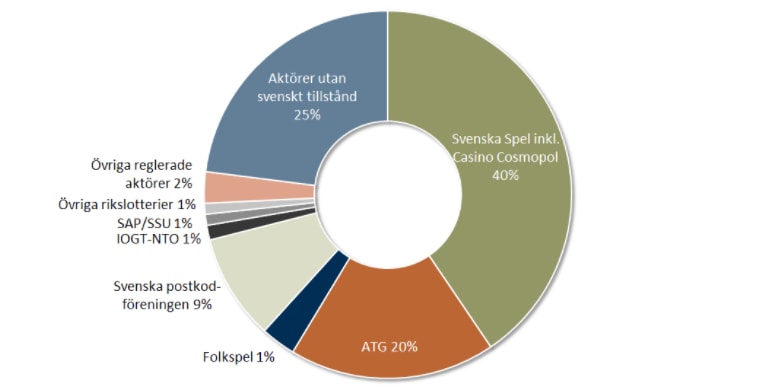 Utländska spelbolag utan svenska verksamhetstillstånd fortsätter att plocka marknadsandelar i Sverige, skriver Lotteriinspektionen i ett pressmeddelande. Under tredje kvartalet bedöms de utländska aktörerna utan tillstånd nu ha lagt under sig totalt en fjärdedel av den svenska spelmarknaden.
