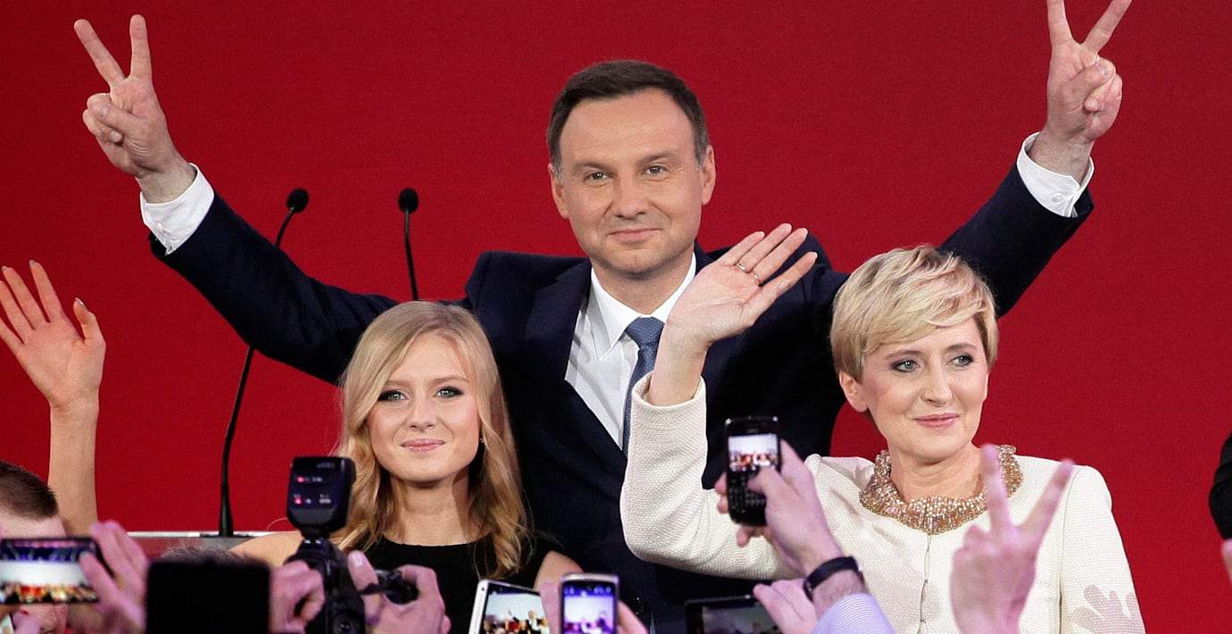 Duda fick enligt undersökningarna 53 procent av rösterna, medan högerliberale Komorowski nådde 47 procent.