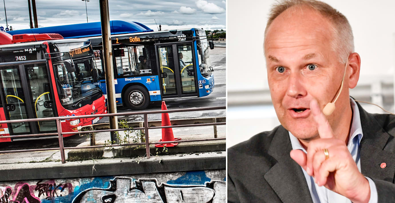 Vänsterpartiet vill göra det möjligt med kraftigt sänkta kostnader för kollektivtrafiken i hela Sverige, säger Jonas Sjöstedt på en pressträff i Visby.