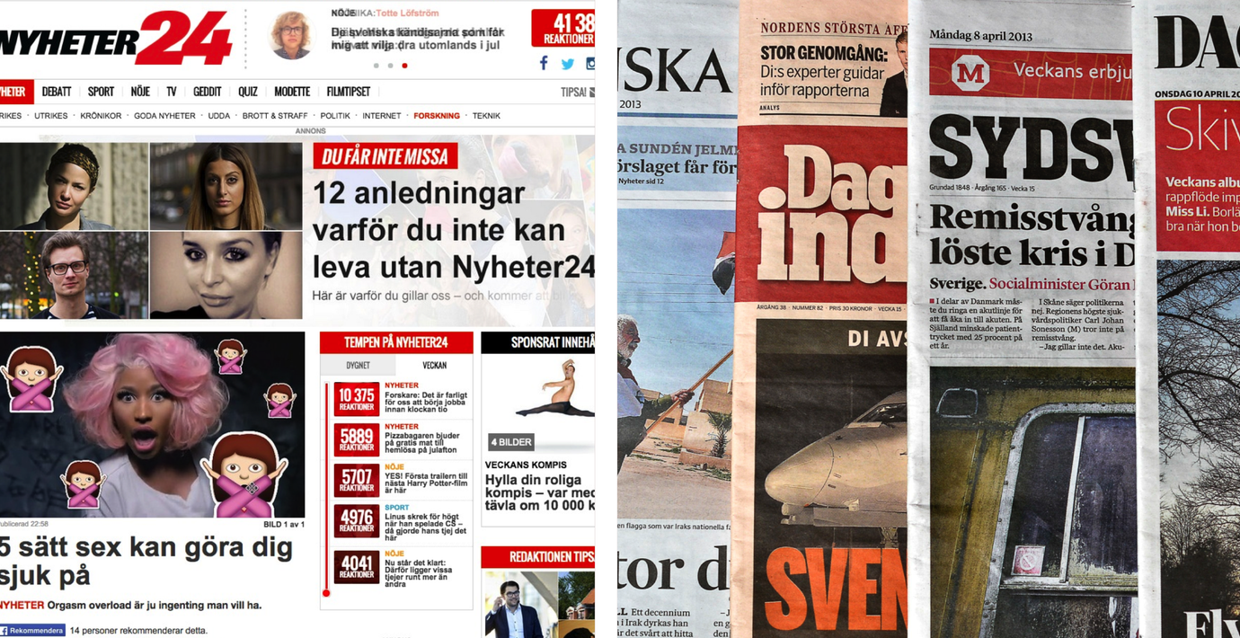 Nyheter 24 och stora svenska dagstidningar. (TT)