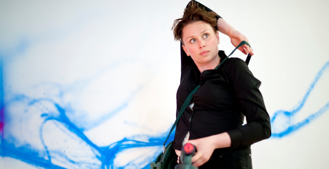 Grafittikonstnären Carolina Falkholt har blivit känd genom sina vaginamålningar. I dag arbetade hon med ett konstverk på ett snöblock i Umeå, när en man plötsligt slog till henne och sade: