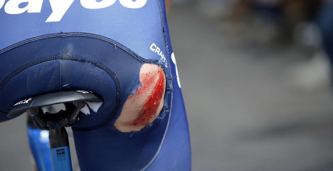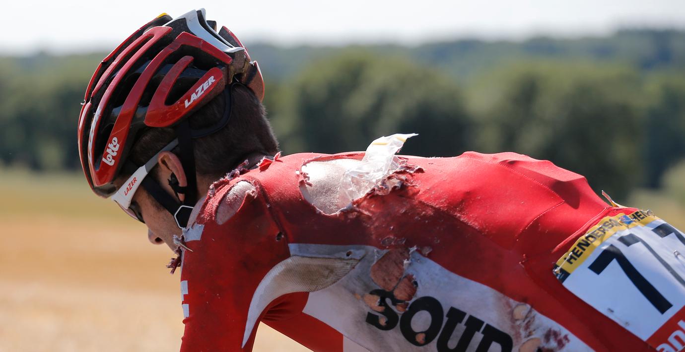 Bonnet gled dryga 50 meter på asfalten och blev sedan överkörd av flera cyklister.