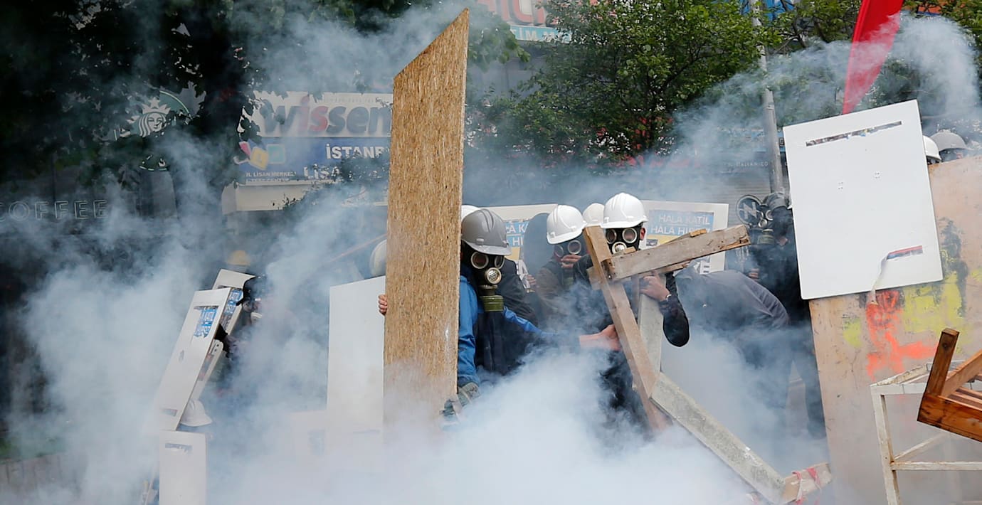 Demonstranter i Turkiet som trotsat demonstrationsförbudet och samlats på Taksimtorget i Istanbul slogs tillbaka av polisen som använde tårgas och vattenkanoner.