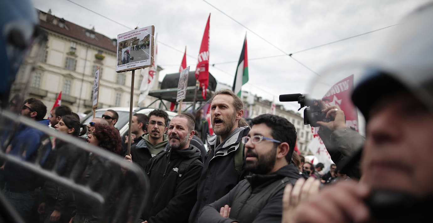 Också i italienska Turin bröt våldsamheter ut mellan polis och demonstranter, som samlats för att protestera mot nedskärningar och arbetslöshet.