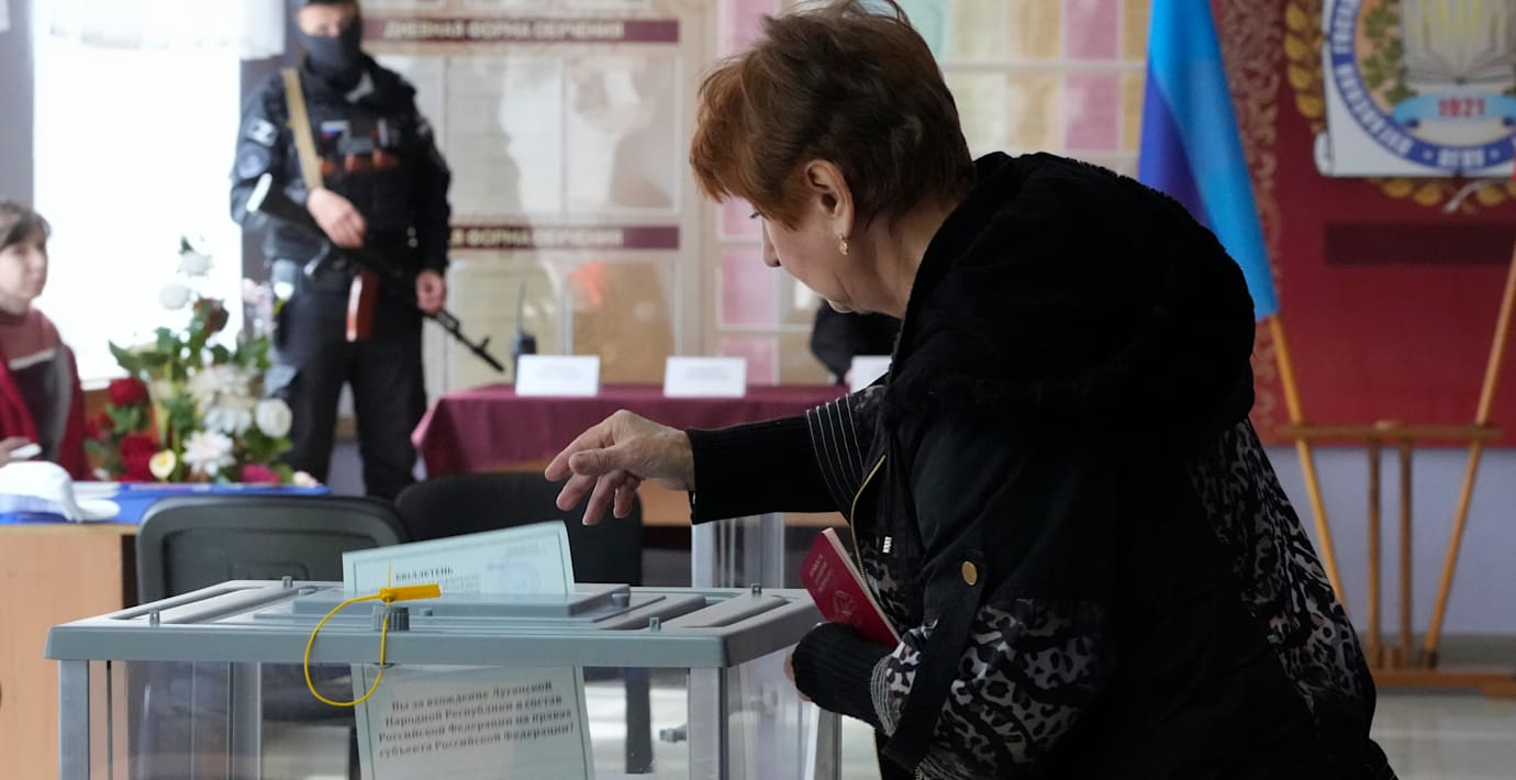 I dag väntas vallokalerna stänga i de ockuperade regioner av Ukraina där ryska marionettstyren de senaste dagarna anordnat så kallade folkomröstningar om att ansluta områdena till Ryssland.