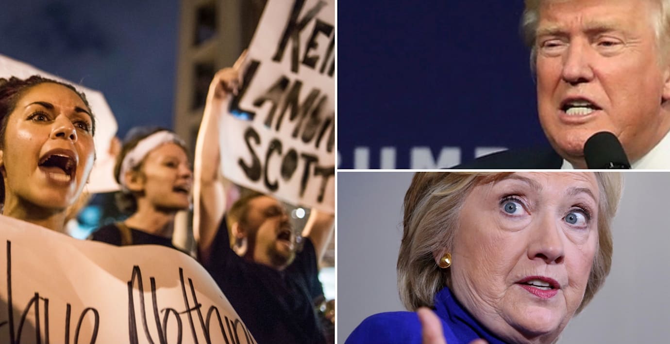 Protesterna i Charlotte efter att en svart man sköts av polis dominerar mycket av den politiska debatten i USA och får inleda morgonens svep från den amerikanska valrörelsen.