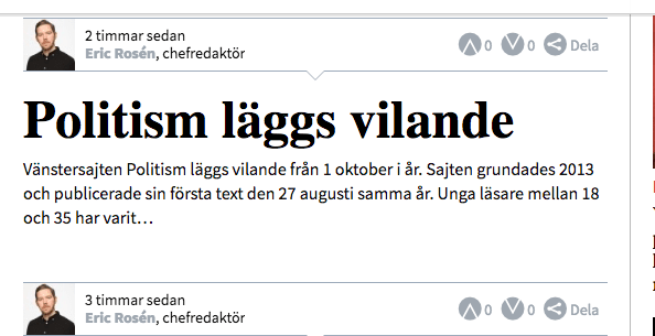 Vänstersajten Politism läggs vilande – inte lönsam