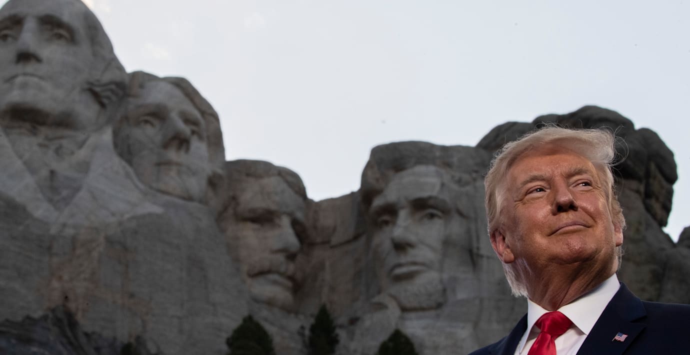 President Donald Trump tjuvstartade firandet av USA:s självständighetsdag med ett tal vid Mount Rushmore i South Dakota på fredagskvällen.