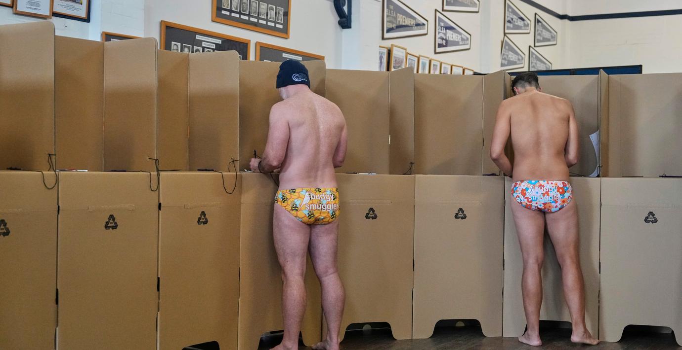 Australiensarna möter valet med en rad unika traditioner. Bland annat badbyxorna ”budgie smugglers” och grill utanför vallokalerna, rapporterar Reuters.