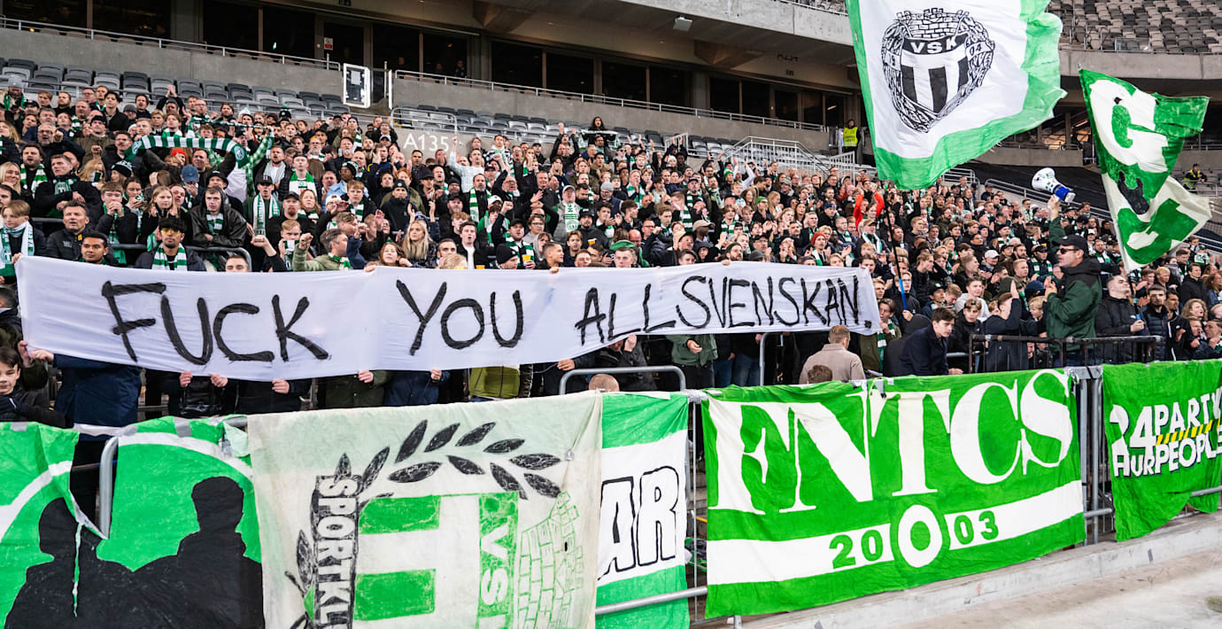 När degraderingen var ett faktum skickade VSK-supportrarna en avslutande hälsning till hela serien, genom en banderoll med texten: ”Fuck you allsvenskan”.