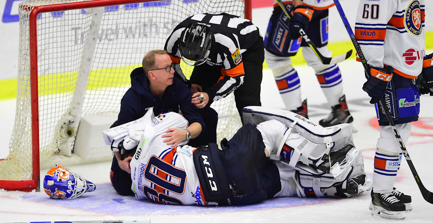 Växjös målvakt Viktor Fasth tvingades lämna isen efter en otäck smäll i den fjärde semifinalmatchen mot Malmö. Knappt fem minuter in i den andra perioden föll Fasth olyckligt sedan han krokat i medspelaren Daniel Rahimis skridsko och slog bakhuvudet i isen. Fasth fick ledas av isen och ersattes av Viktor Andrén.