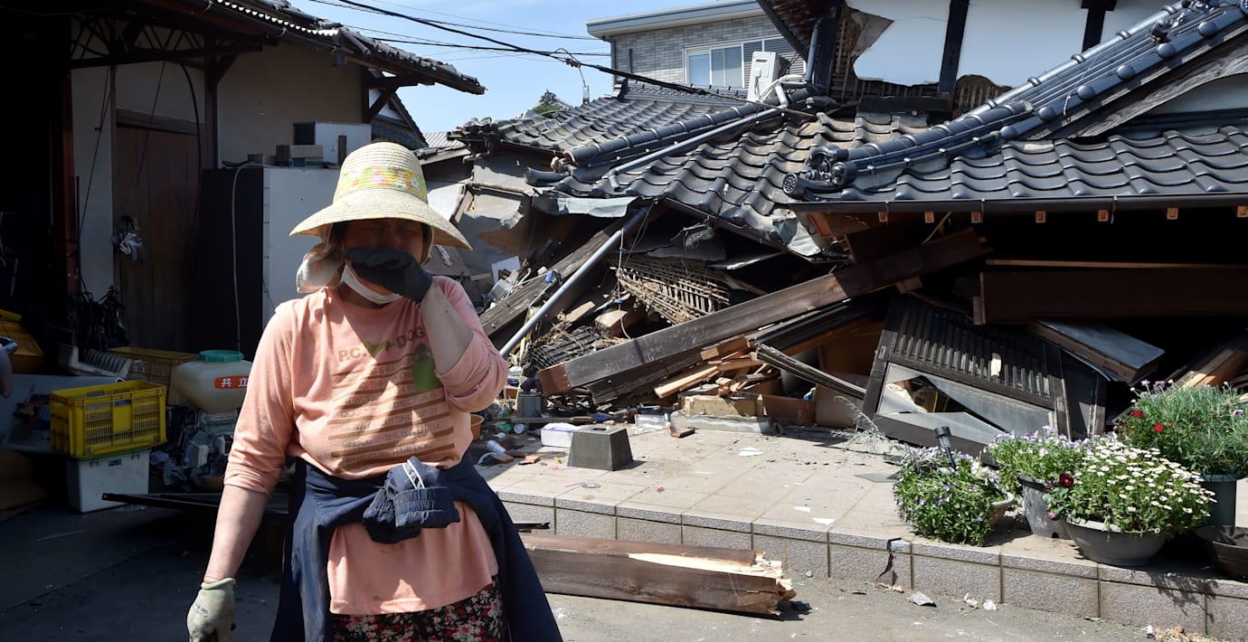 – Jag kunde höra ljudet av hur allt mitt porslin rasade ner och förstördes i köket, säger Ayuko Sakamoto som står i en matkö på ön Kyushu.