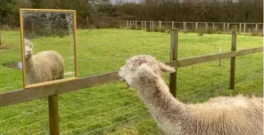 Den åldrande alpackan Giovanni i brittiska Cornwall blev ensam i sin inhängnad efter att hans två kompisar dött på kort tid. Det fick djurparken att ta till en udda metod. Parken vädjade till allmänheten om speglar för att Giovanni inte skulle känna sig isolerad i väntan på nya kamrater – och en mängd speglar kom in. Nu är alpackan omgiven av ”vänner”. ”Han verkar ganska glad över att se sin spegelbild”, säger djurparkschefen Gary Zammit. Läs mer i BBC eller The Telegraph.