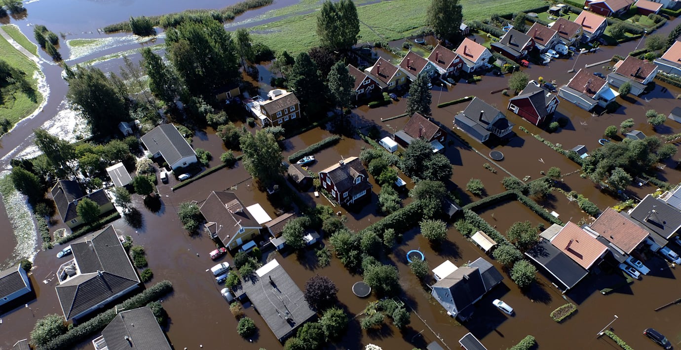 Villakvarter under vatten – åker gummibåt