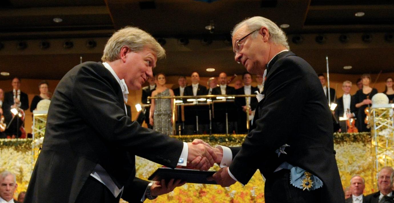 – Min farmor som bor i Fargo i North Dakota ville se medaljen så jag tog med den för att visa henne, inledde nobelpristagaren.