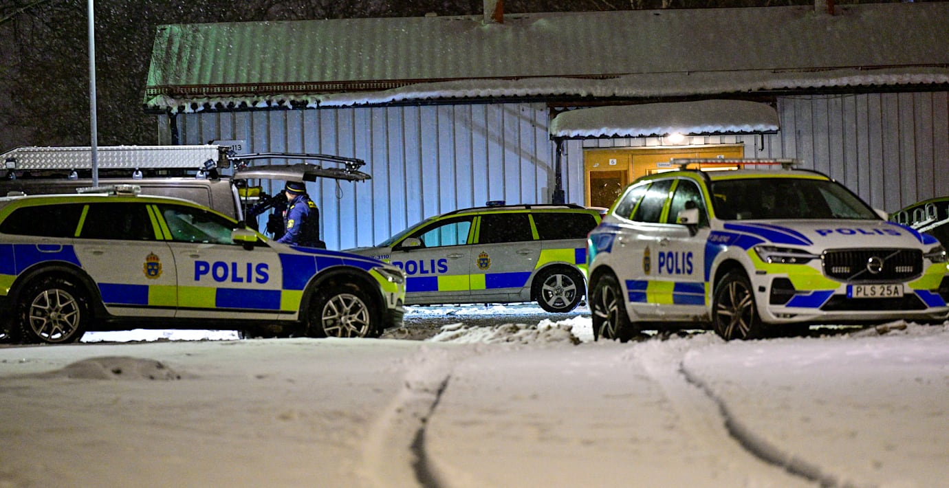 Ett stort antal polisbilar finns på plats i Hovsjö i Södertälje efter lördagskvällens skjutning,berättar ett vittne för Expressen.