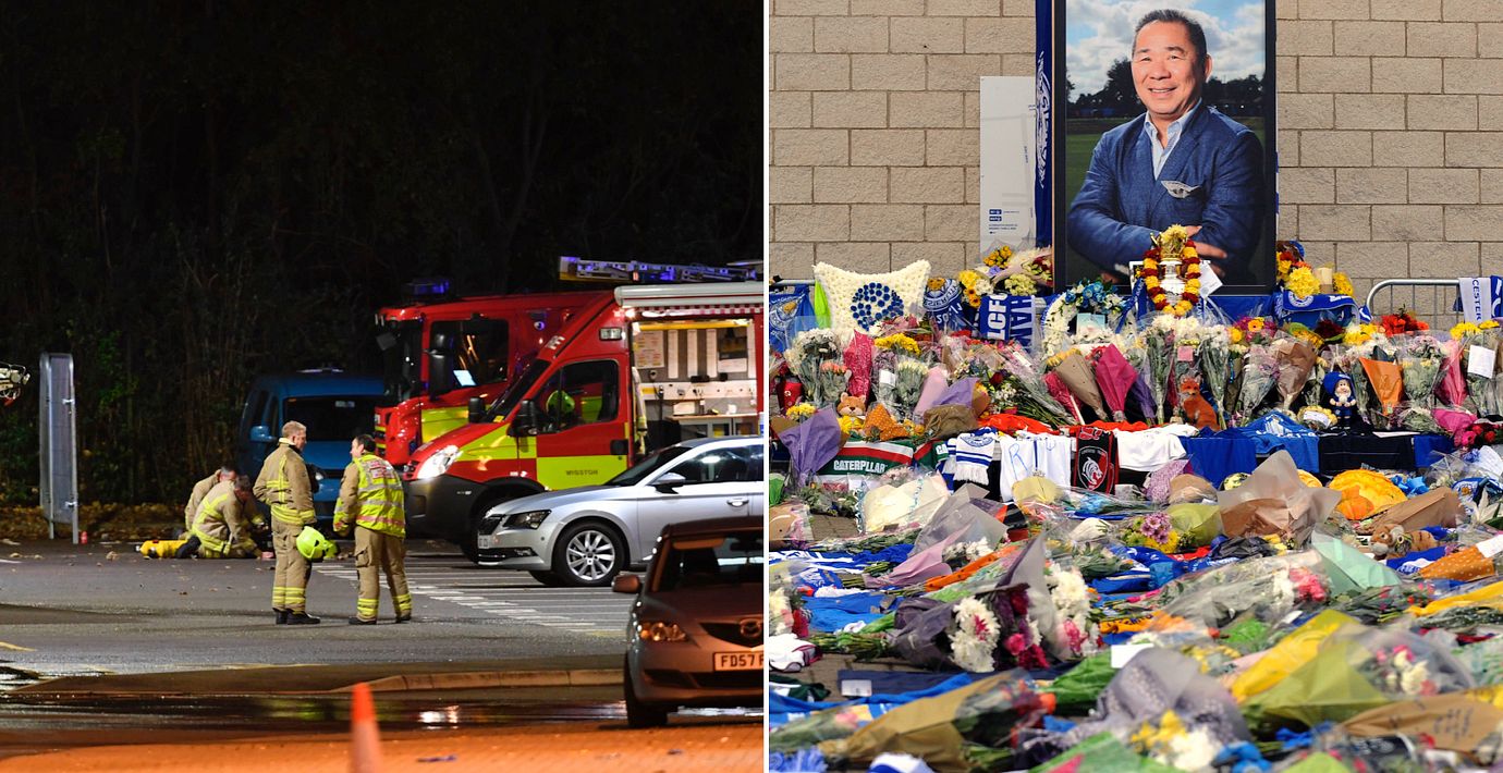 Övervakningsbilder från området kring arenan visar hur helikoptern snurrade hejdlöst och störtade mot marken utan kontroll. Alla fem personer, inklusive Leicesters ägare Vichai Srivaddhanaprabha, dog i kraschen.