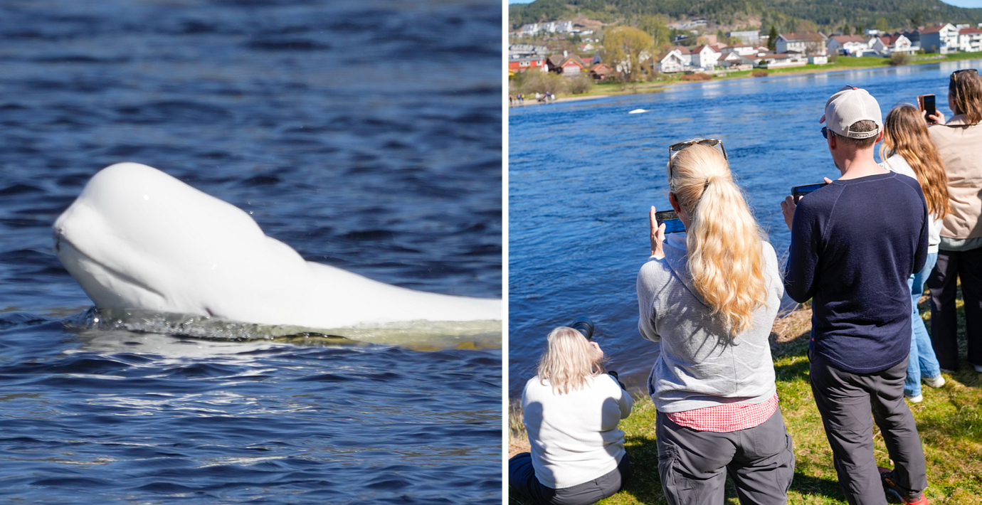 Vitval simmade vilse – dök upp i älv väster om Oslo