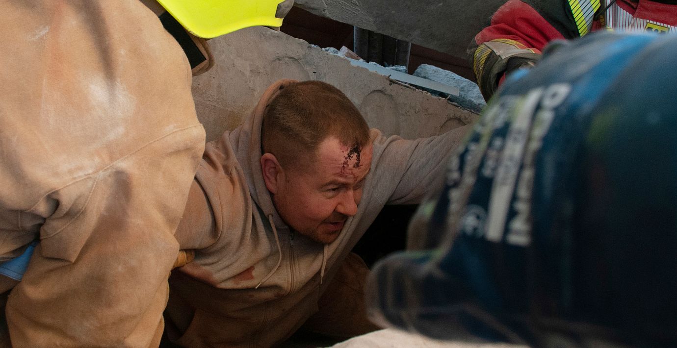 Ukrainaren Vladislav hamnade under rasmassorna till en byggnad efter en rysk robotattack i Charkiv på fredagen, men kunde räddas efter att han själv ringt från därifrån han satt fast. Det enligt Sky News, som följde räddningsarbetet.