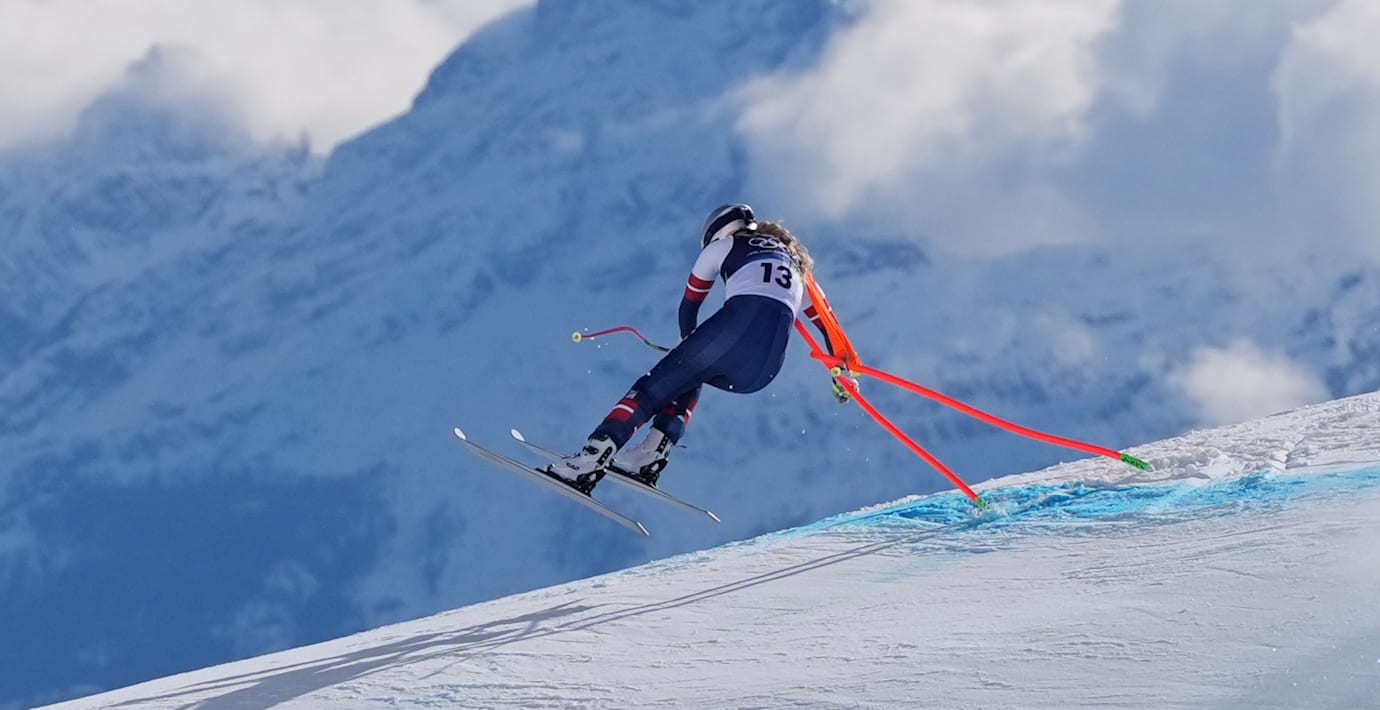 ”I skidåkning tar vi risker, precis som i resten av livet. Vi drömmer. Vi älskar. Vi hoppar. Och ibland faller vi. Ibland krossas våra hjärtan. Ibland uppnår vi inte de drömmar vi vet att vi hade kunnat nå. Men det är också det som är livets skönhet – att vi får försöka”, skriver amerikanskan på Instagram.