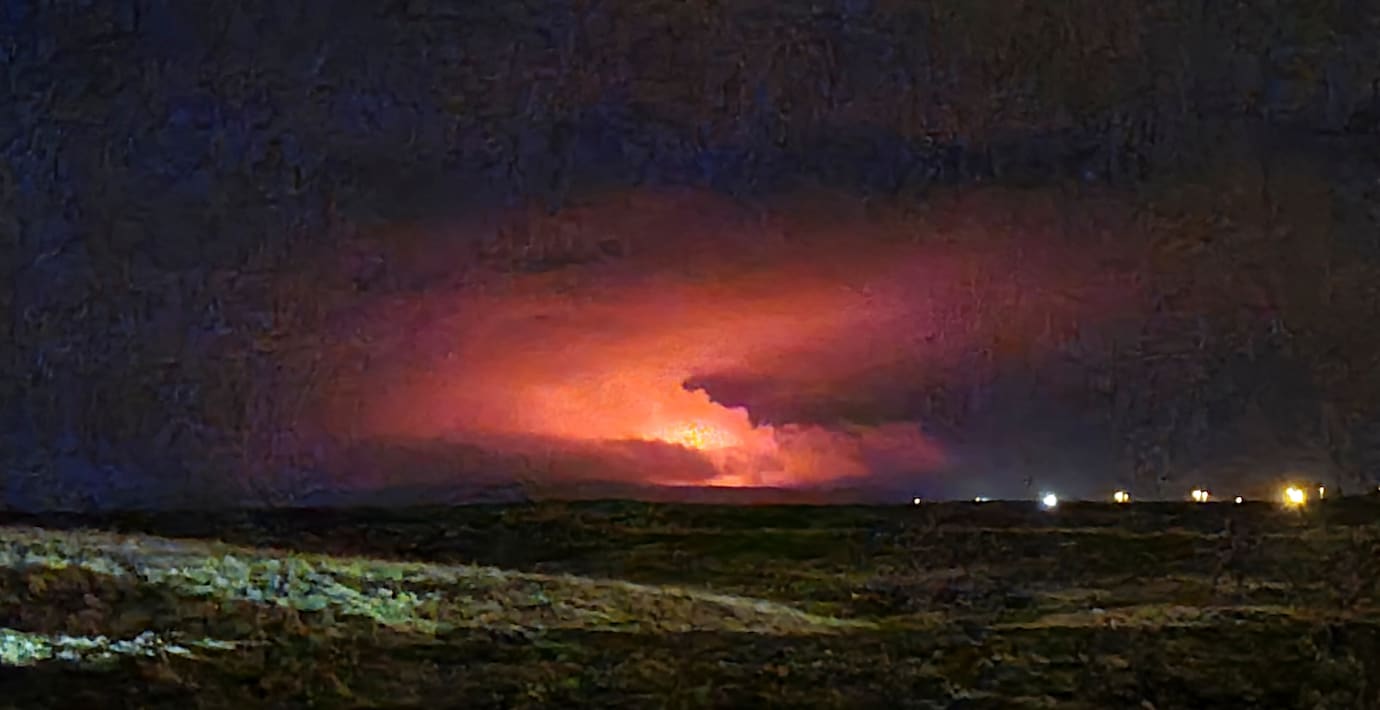 Vulkanutbrott vid Reykjavik – brandrött sken på himlen