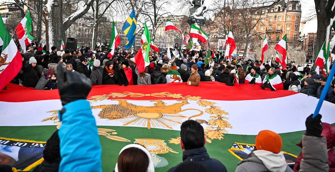 Den gamla flaggan med en sol och ett lejon med svärd var Irans officiella fram till 1979 och har blivit en symbol för motståndet mot den nuvarande regimen bland många exiliranier.