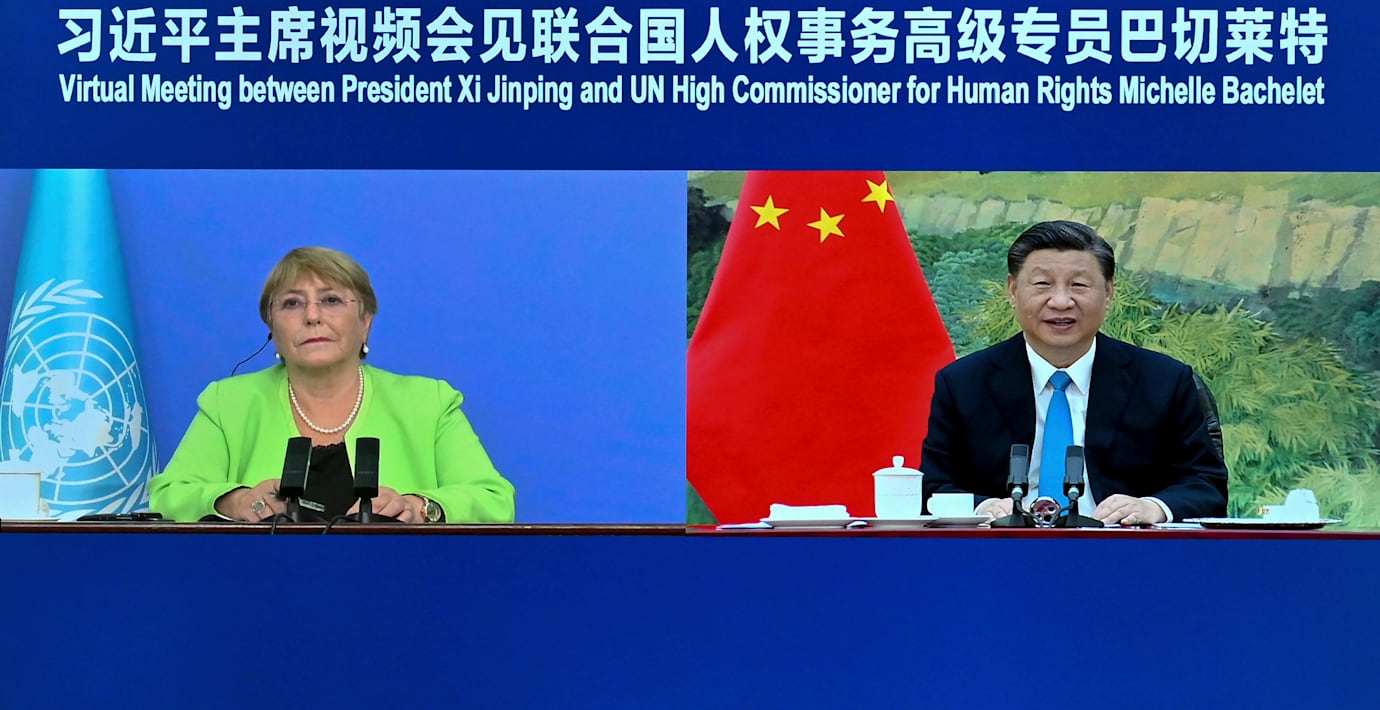 Kinas ledare Xi Jinping och FN:s människorättschef Michelle Bachelet har haft ett videosamtal om mänskliga rättigheter under onsdagen. Det rapporterar statliga CCTV enligt AP.