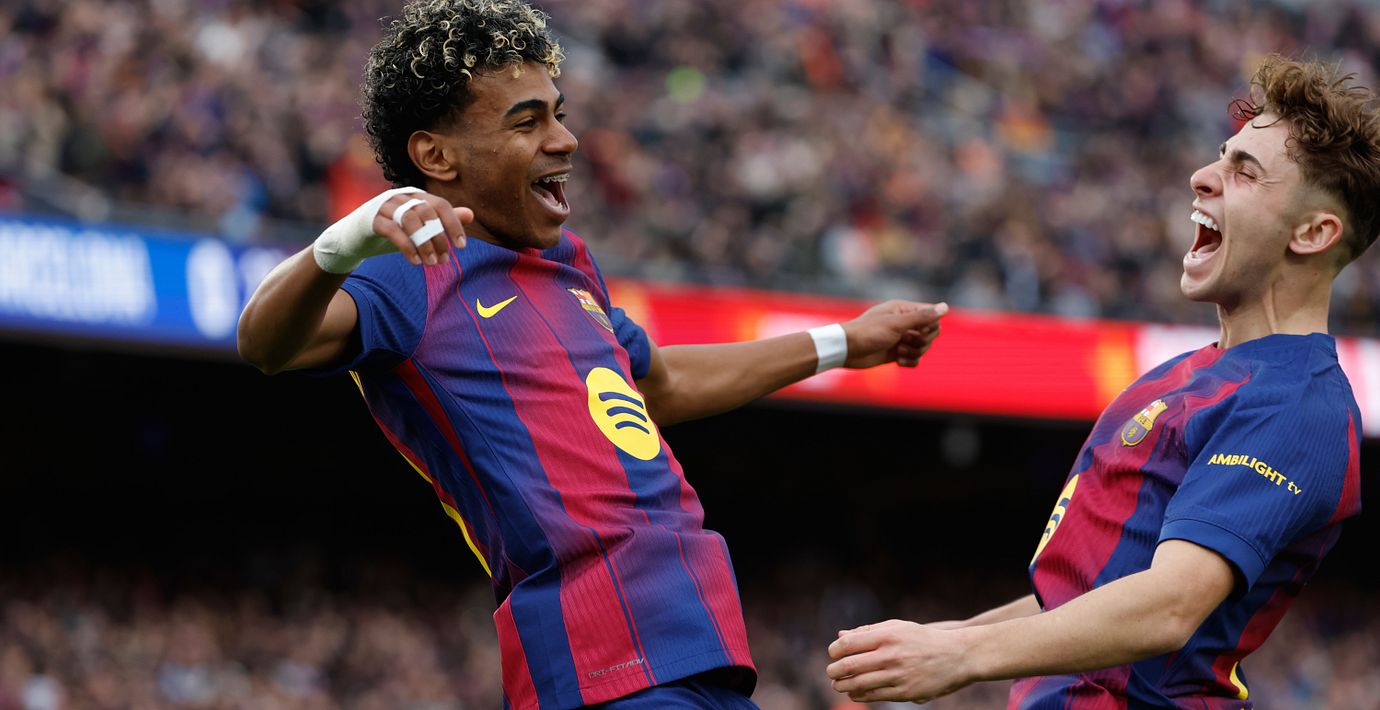 Yamal satte Barcelonas tre första mål inför hemmapubliken på Camp Nou. Efter sitt tredje mål byttes han ut till applåder och ersattes av svensken Roony Bardghji.