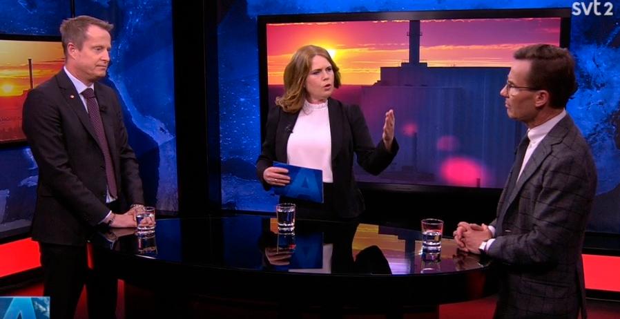 – Ska vi klara klimatmålen måste vi ha fossilfria alternativ, sa han när han mötte energiminister Anders Ygeman i debatt i SVT:s Aktuellt.