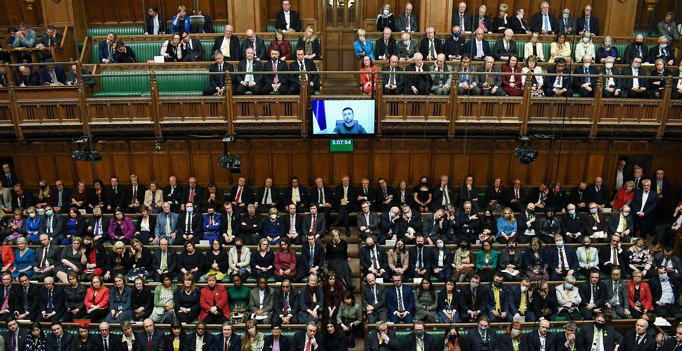 När den ukrainske presidenten Volodymyr Zelenskyj i dag talade till det brittiska parlamentet jämförde han landets krig mot Ryssland med Storbritanniens strider mot Nazityskland under andra världskriget.