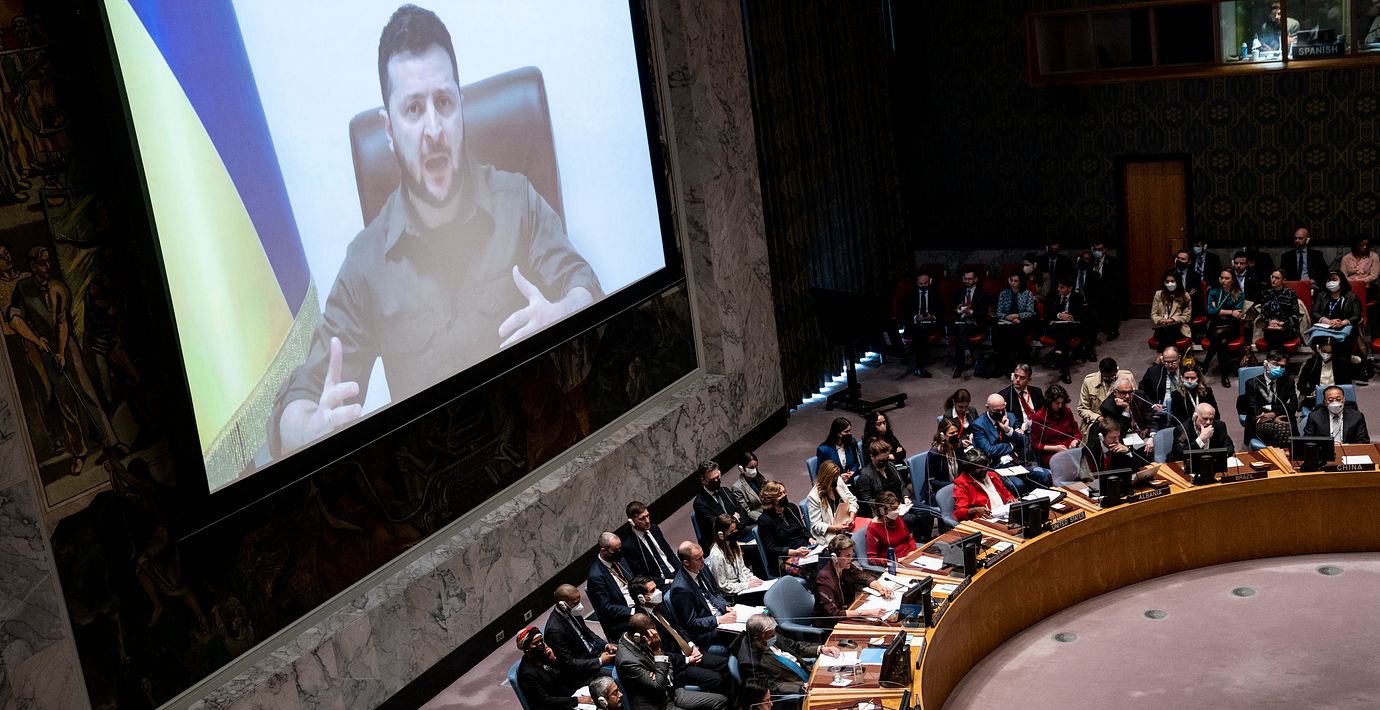Ukrainas president Volodymyr Zelenskyj talade under tisdagen inför FN:s säkerhetsråd. Han inledde sitt tal med att mycket detaljerat berätta om de grymheter som ryska trupper har begått i Butja.