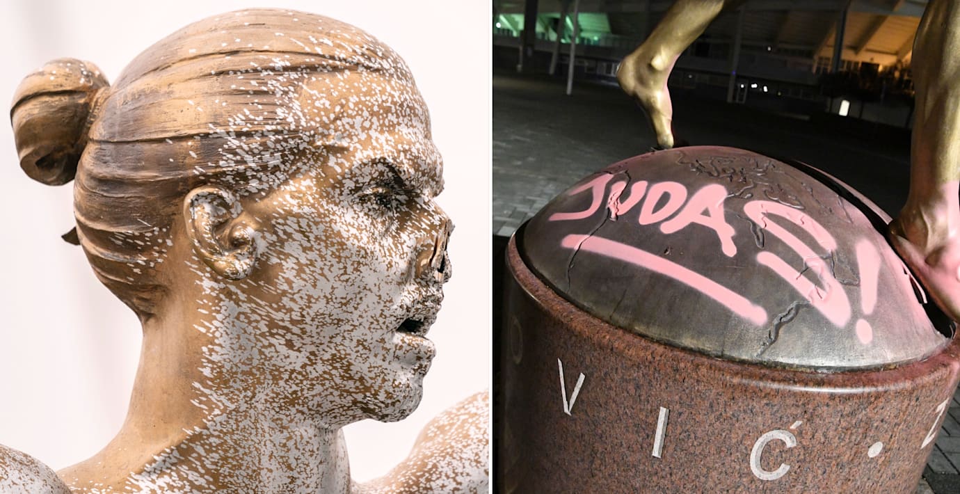 Tidigare har statyn stått utanför Stadion men har upprepade gånger utsatts för vandalisering sedan Ibrahimovic meddelade att han går in som delägare i Malmö FF:s konkurrent Hammarby.