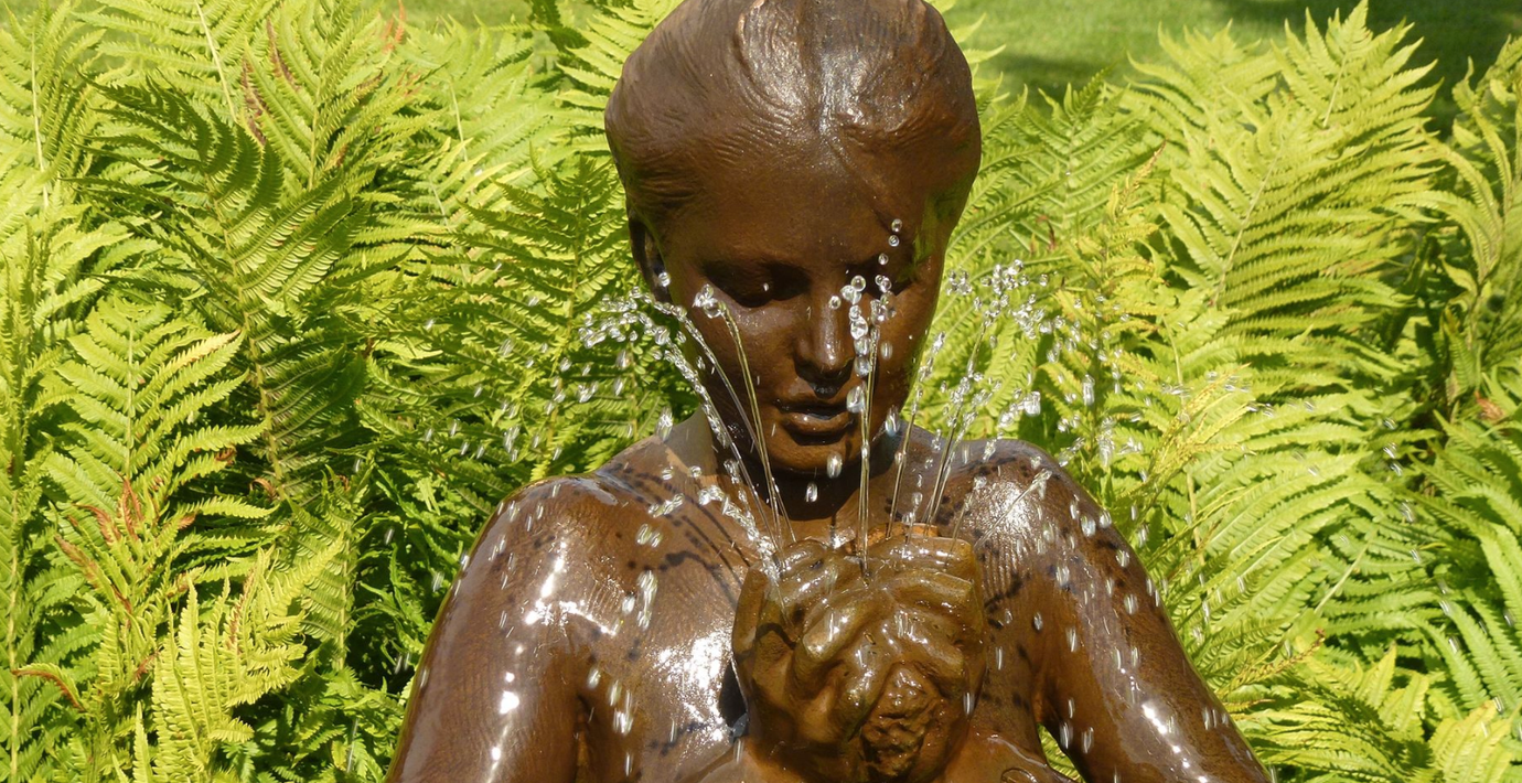 Zorn berättade själv om tillkomsten av fontänskulpturen i boken Skulptören Anders Zorn: "Det var 1908 som min hustru hade bett mig få göra en cementbrunn att vattna ifrån. Så rann det mig i sinnet varför ej göra en av porfyr […] Det kunde bli vackert och varför inte göra en fontän samtidigt. Vatten hade vi och bra tryck och vad vore lämpligare än en flicka med svamp som hon pressade på det silade mellan fingrarna […] Samma dag griper jag mig an uppgiften. Modellerna var tre systrar Mjöberg, vad som fattades den ena fanns hos den andra…"Den ursprungliga titeln på skulpturen var Svampen men den döptes senare om till Morgonbad. Zorns unga kvinna i morgonbadet är en meter hög och tillverkad i brons. Hon pressar händerna kring en svamp och står i ett av en pelare upphöjd näckrosblad, även det i brons. Vattnet sprutar i små fontäner från svampen, rinner över kvinnans nakna kropp ner i näckrosbladet och därifrån till fontänbassängen. Morgonbad har samma konstnärliga uttryck som Zorn använt för sina badande kvinnor i många av sina målningar.